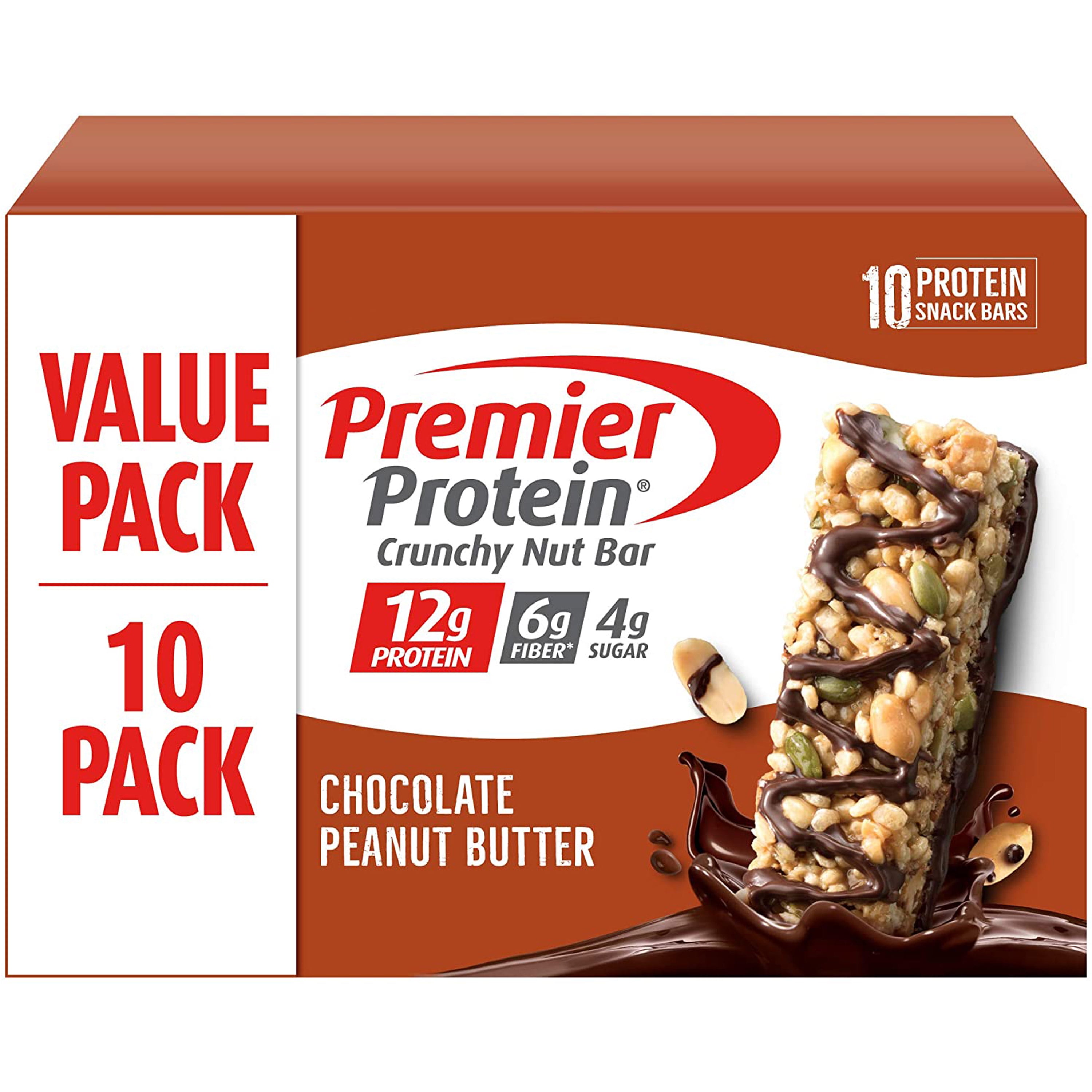 Premier Protein Crunchy Nut Bar Chocolate Peanut Butter 12g Protein 1 55 Oz 10 Ct Walmart Com