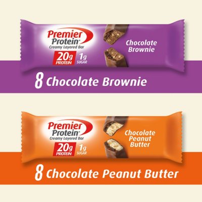 Premier Protein 20g Protein Bar Variety Pack Chocolate Brownie Chocolate Peanut Butter 16 Ct 2 08 Oz Ea Sam S Club