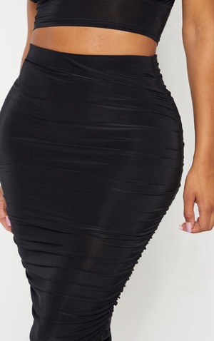 Shape Black Slinky Ruched Side Skirt Curve Prettylittlething